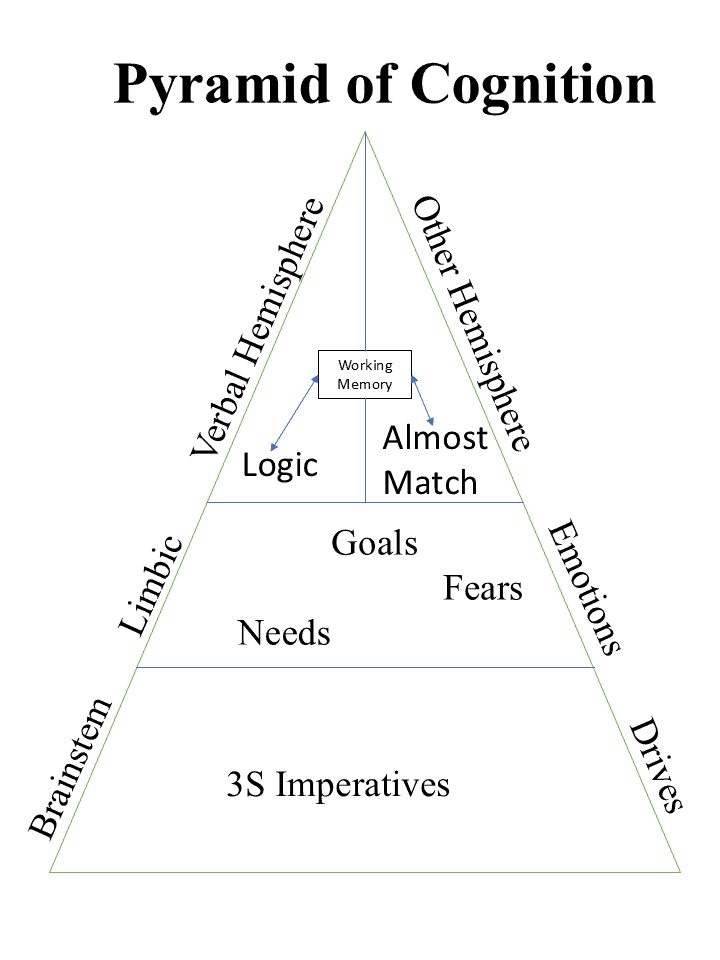 The right hemisphere delivers fast, emotional assessments; the left offers verbal logic. In the prefrontal cortex, these streams meet, giving us the power to choose responses that serve our goals rather than our impulses. This work traces the journey from raw sensation to conscious judgment, showing how the pyramid of cognition shapes the structure of thought—and how understanding that structure can change the way we live.